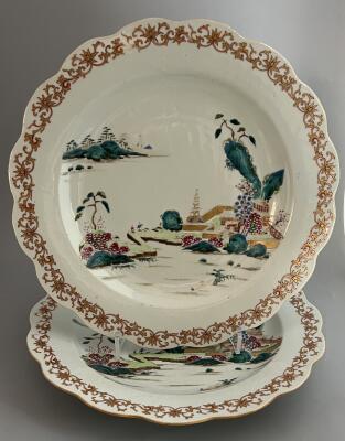 Ett par stora fat i kinesiskt porslin med dekor i ...