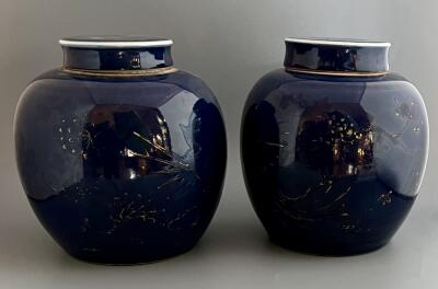 Ett par lockurnor i kinesiskt porslin, blå glasyr...