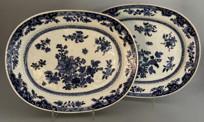 Två uppläggningsfat/stekfat i kinesiskt porslin....