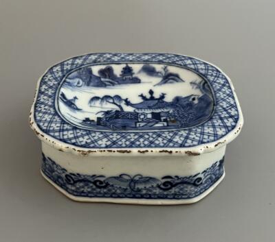 Saltkar i kinesiskt porslin med dekor i blå under...