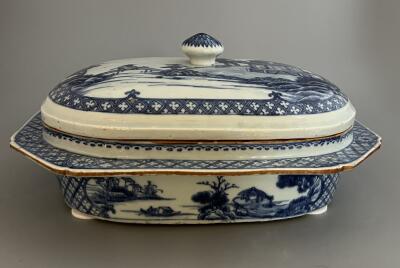 Terrin med lock, dekor i blå underglasyr. Kina Os...