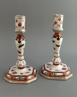 Ljusstakar, ett par. Dekor i emaljfärger, famille...