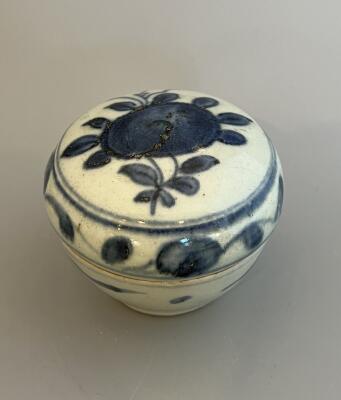 Ask med dekor i blå underglasyr. Kinesiskt porsli...