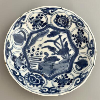 Litet fat, kraak-porslin, med dekor i blå undergl...