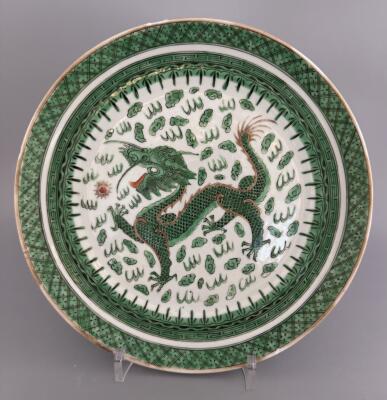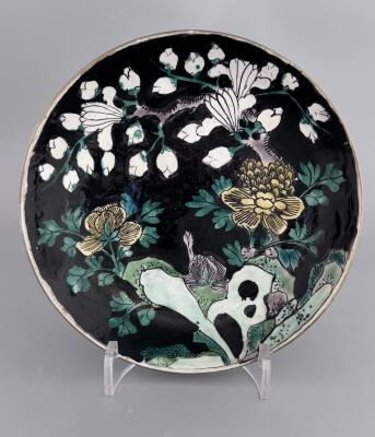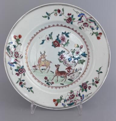 Vacker tallrik med emaljdekor, famille rose och mo...