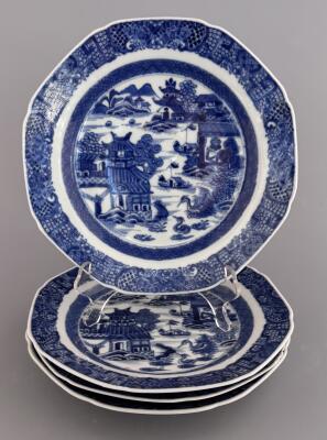 4 st liknande assietter från Kina 1700-tal. Blå ...