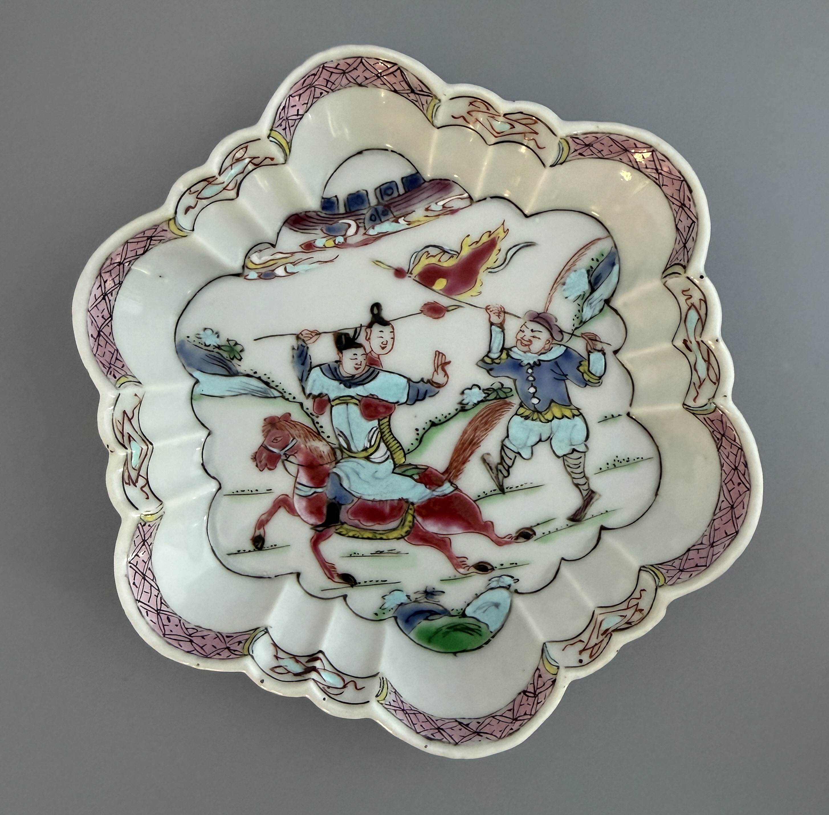 Tekannefat i kinesiskt porslin från 1700-talets Qianlongperiod. Dekor i famille rose.