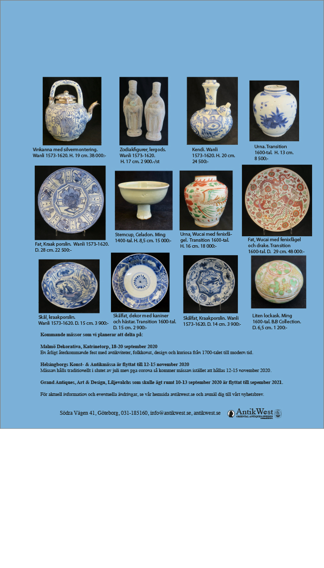 Maila info@antikwest.se eller ring 031-185160 för information och frågor.