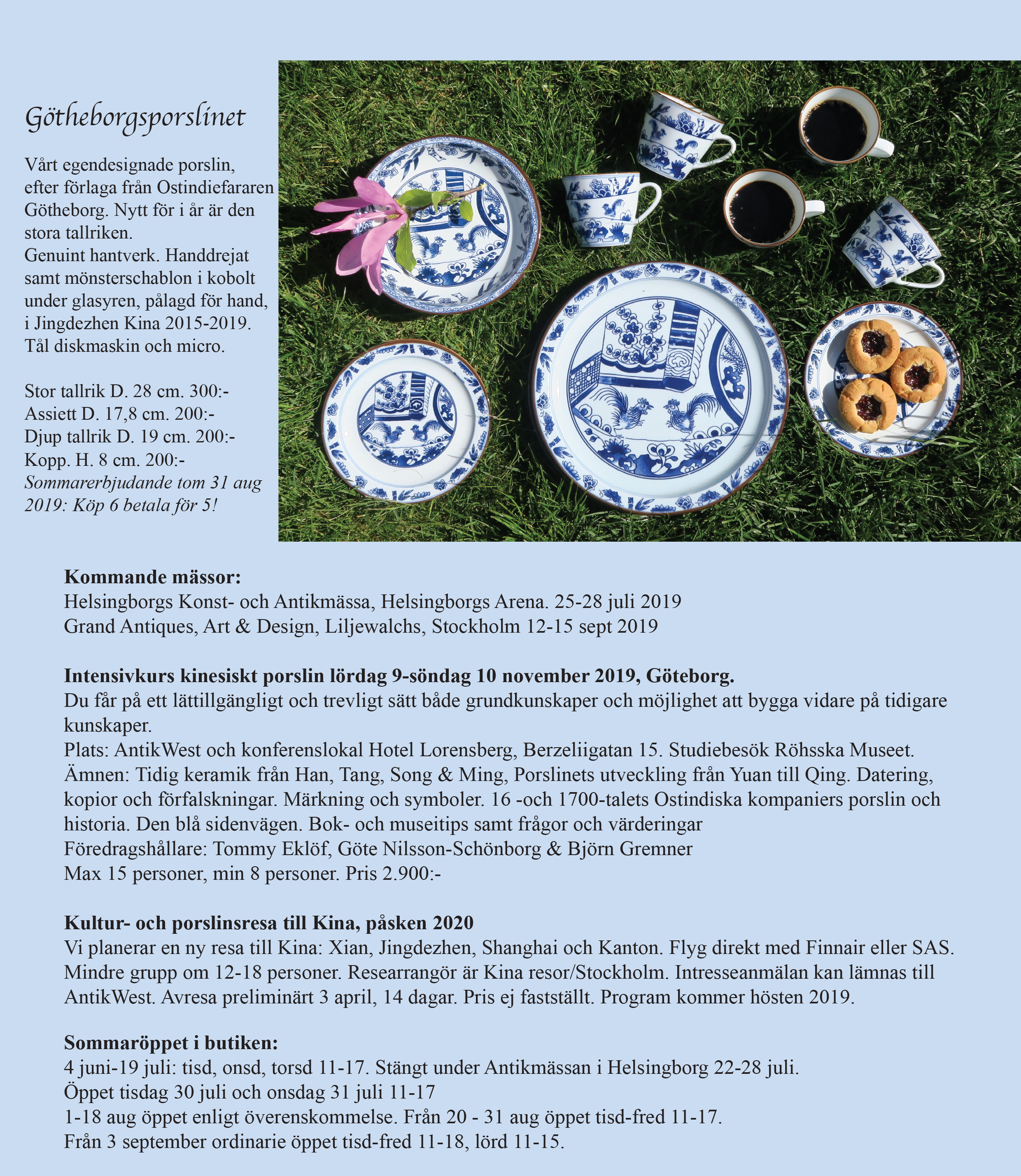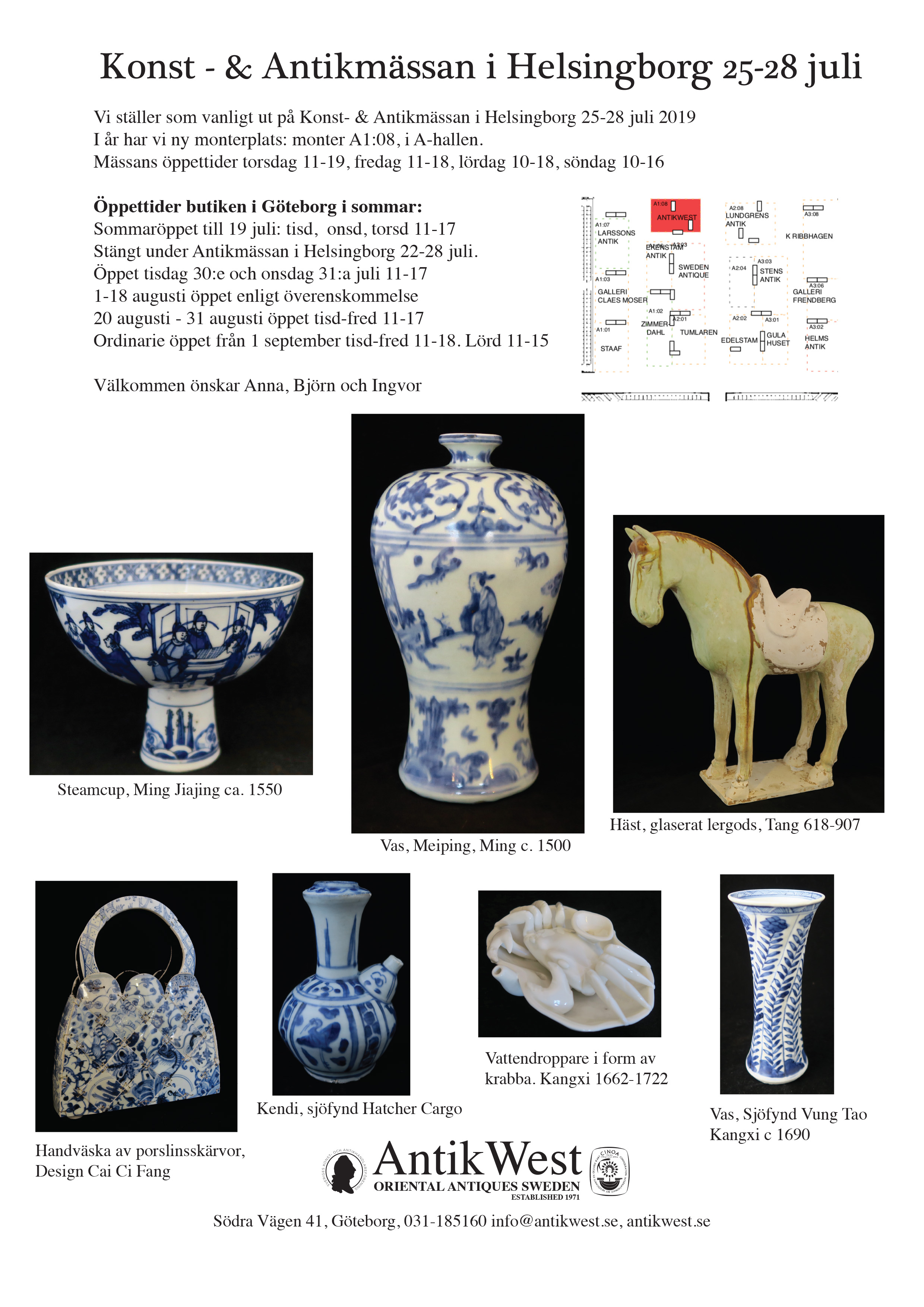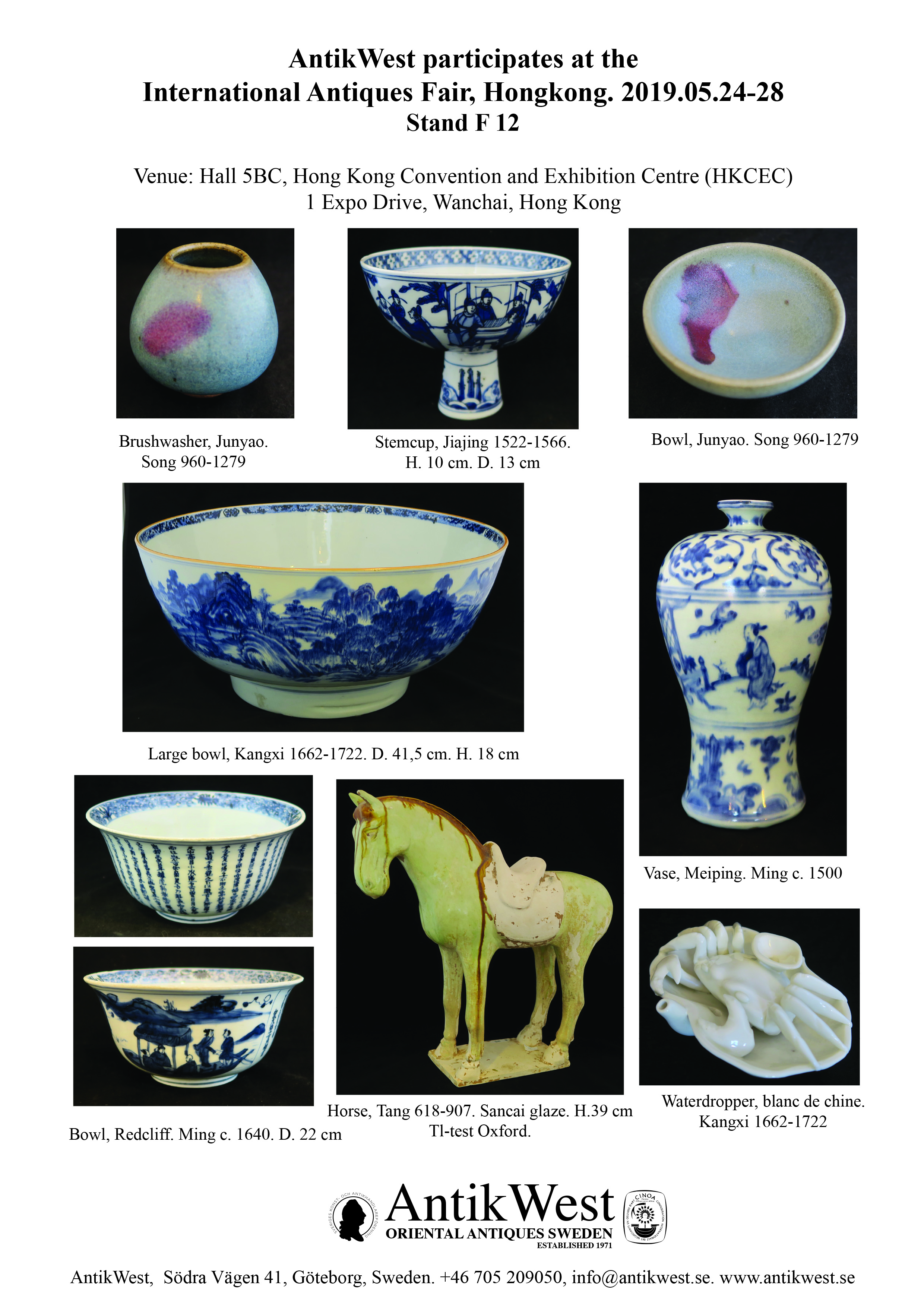 Utställning med ostindiska sjöfynd från 800-talet till 1800-talet. Alla föremål är till salu. Föremål med proveniens från Belitung, Royal Nanhai, Nanyang, Hatcher Ming Cargo, Vung Tao, Bintuan, Hoi An Hoard, Nanking Cargo, Ca Mau, Desaru och Götheborg. Många föremål kommer från de hängivna och kunniga samlarna Börje & Birgitta Forssell (B&B Collection) i Göteborg.