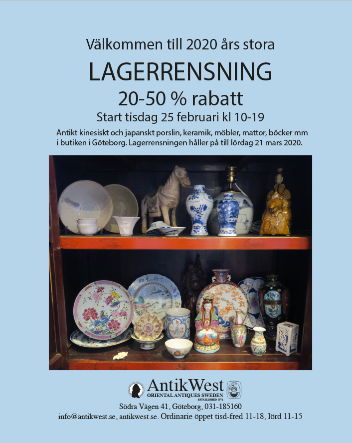 Årets lagerrensning fortsätter ett tag till, pga begränsade öppettider kommer vi istället att lägga ut föremål från lagerrensningen på vår hemsida.