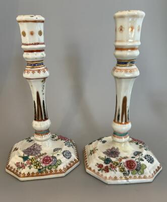 Ljusstakar i kinesiskt porslin med dekor i famille...