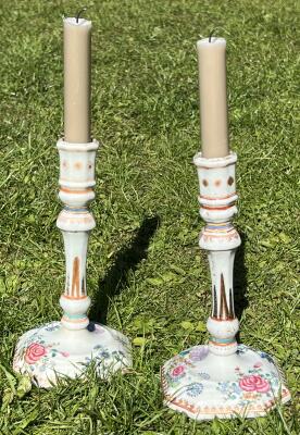 Ljusstakar i kinesiskt porslin med dekor i famille...